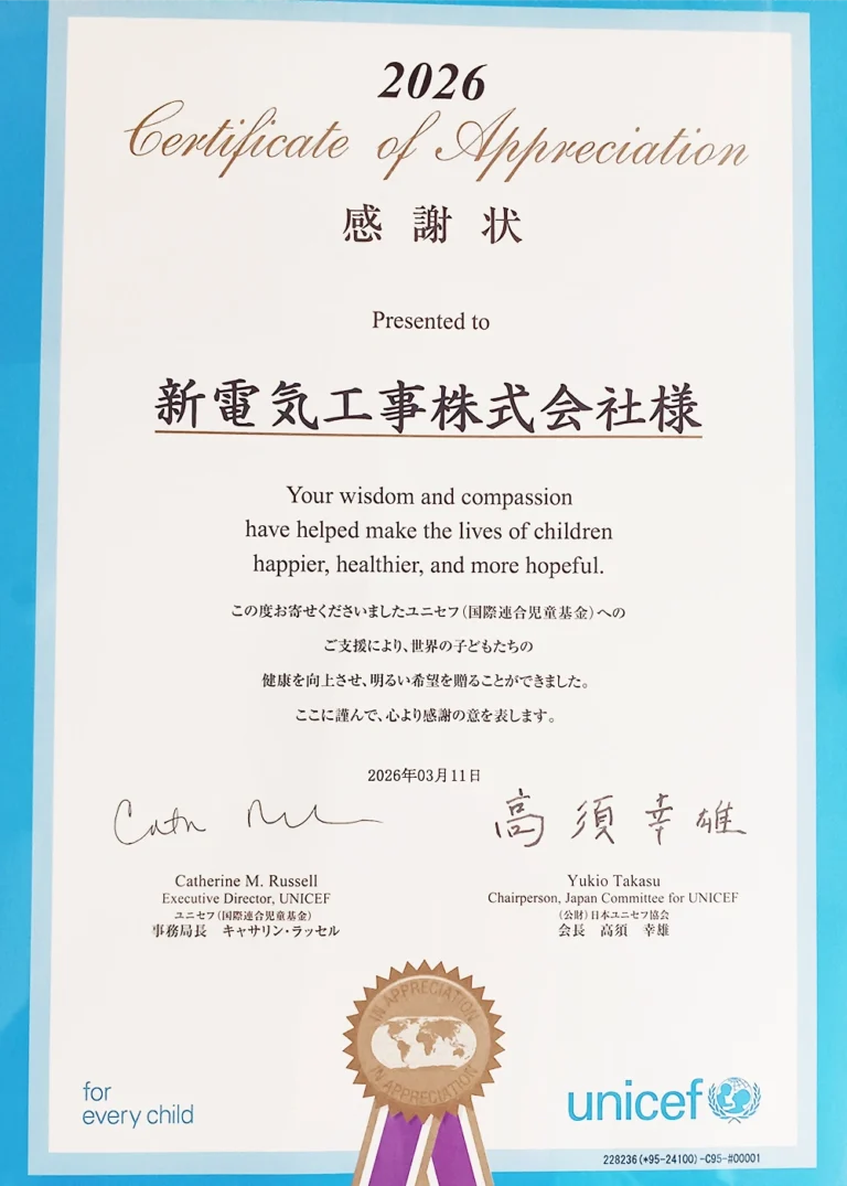 社会貢献活動 2026.3.11 ガザ人道危機緊急募金に寄付をいたしました QUESTION質問 3K(きつい、汚い、危険)から新4K(給与、休暇、希望、カッコイイ)に変わるといわれてますが本当ですか? A: 私目線で言わせていただきます。給与は手厚く感じていただけるかはわかりませんが、福利厚生、その他の手当は手厚くしたいと思います。休暇に関してですが、最低年間5日は有給をとっていただきます。また4週8休、祝日も休みです。他、正月、ゴールデンウィーク、お盆休み。希望に関してですが、まず電気の仕事はなくなることはないと思います。AI電気自動車など、需要が増えてきますので、電気は必要不可欠です。電気の技術を身に付ければ、一生の宝物になります。カッコイイに関してですが、街路灯、建物内の照明は形となって残るので、それだけでカッコイイ仕事だと思います(ここの建物の照明は俺が施工したんだぜ!ここの街路灯は俺が設置したんだ、今日もきれいに輝いてるな、みたいな)左の写真を見てください。自分で施工した照明灯がずっと残ります。自分の仕事が形となって残るって、うれしいって思いませんか?また電気工事士には危険がつきものです。そんな危険な仕事を命をかけてやってるんだ、ってすごくカッコイイ事だと思いませんか?私自身電柱に登って防犯灯を設置していた時に、通りかかったおばあちゃんが一緒にいたお孫さんに「わぁ、高いところに登ってすごいね〜、頑張ってくださいね」ってお孫さんと一緒に手を振られたことがあります。これは本当にうれしいです。 ABOUT会社概要 READ MORE RECRUIT採用情報 採用情報はこちらから FAQ(よくある質問) BUSINESS事業内容 READ MORE SDGs持続可能な開発目標 弊社では、国連が提唱する持続可能な開発目標「SDGs」 に賛同し、持続可能な社会の実現に向けた取組みを社内全体で行っていくことを宣言いたしました。 SDGs CONTACTお問合せ お問合せフォームへ